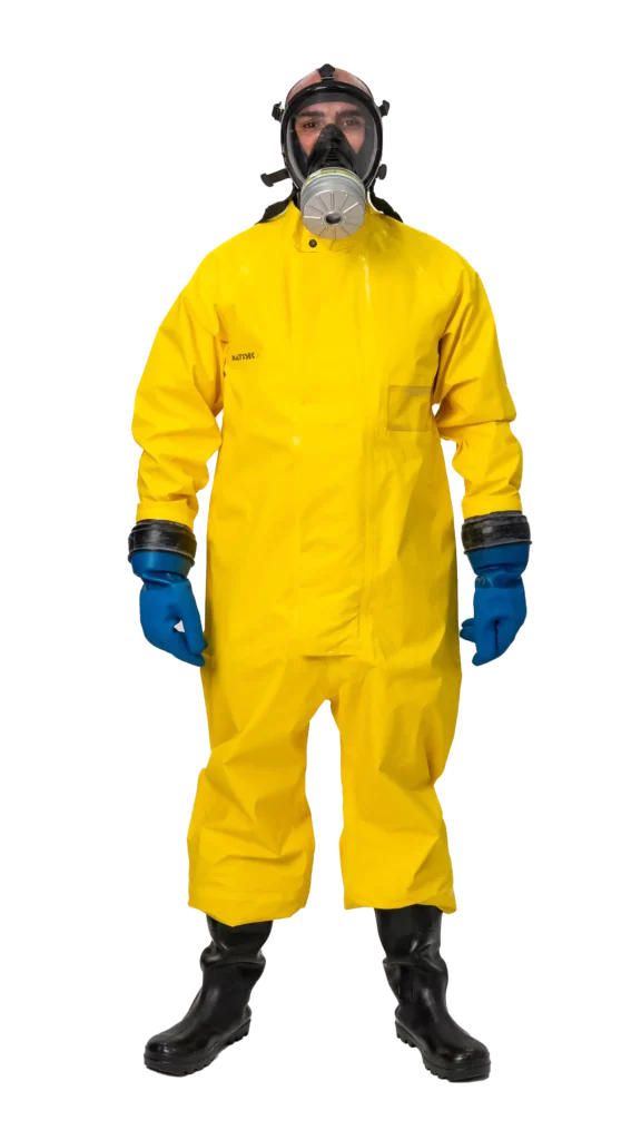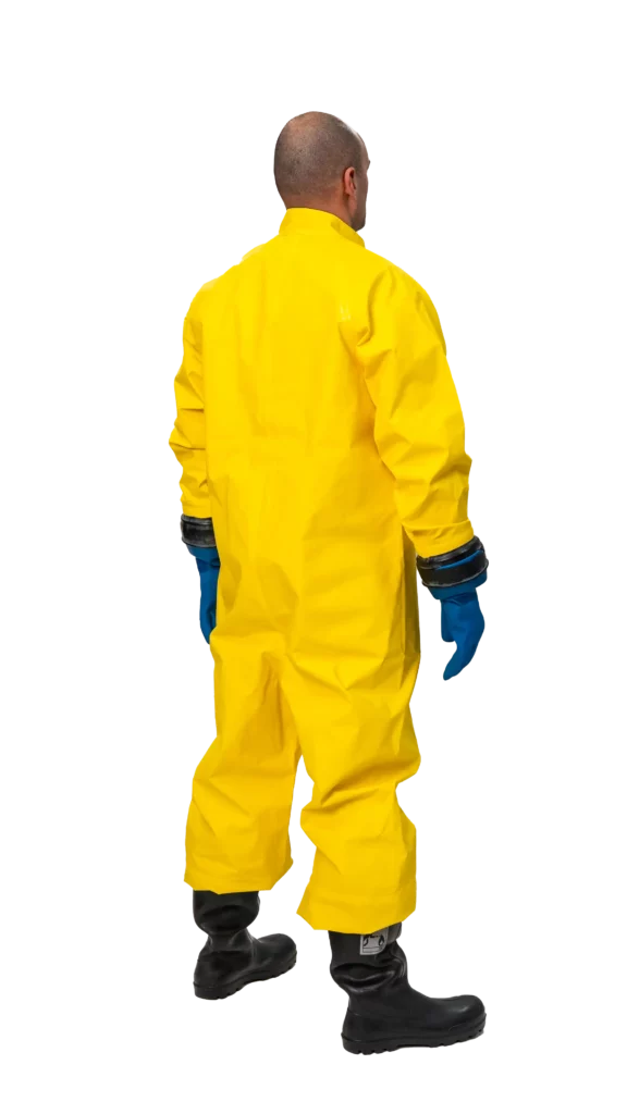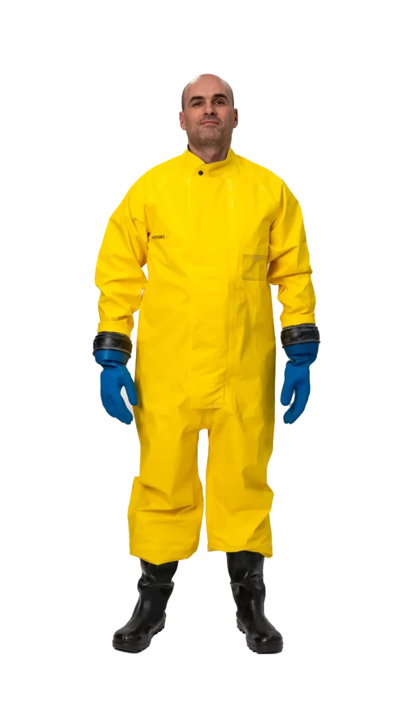- Barrière efficace contre les projections chimiques liquides, permettant un changement rapide et sécurisé des gants sans compromettre l’étanchéité de la tenue.